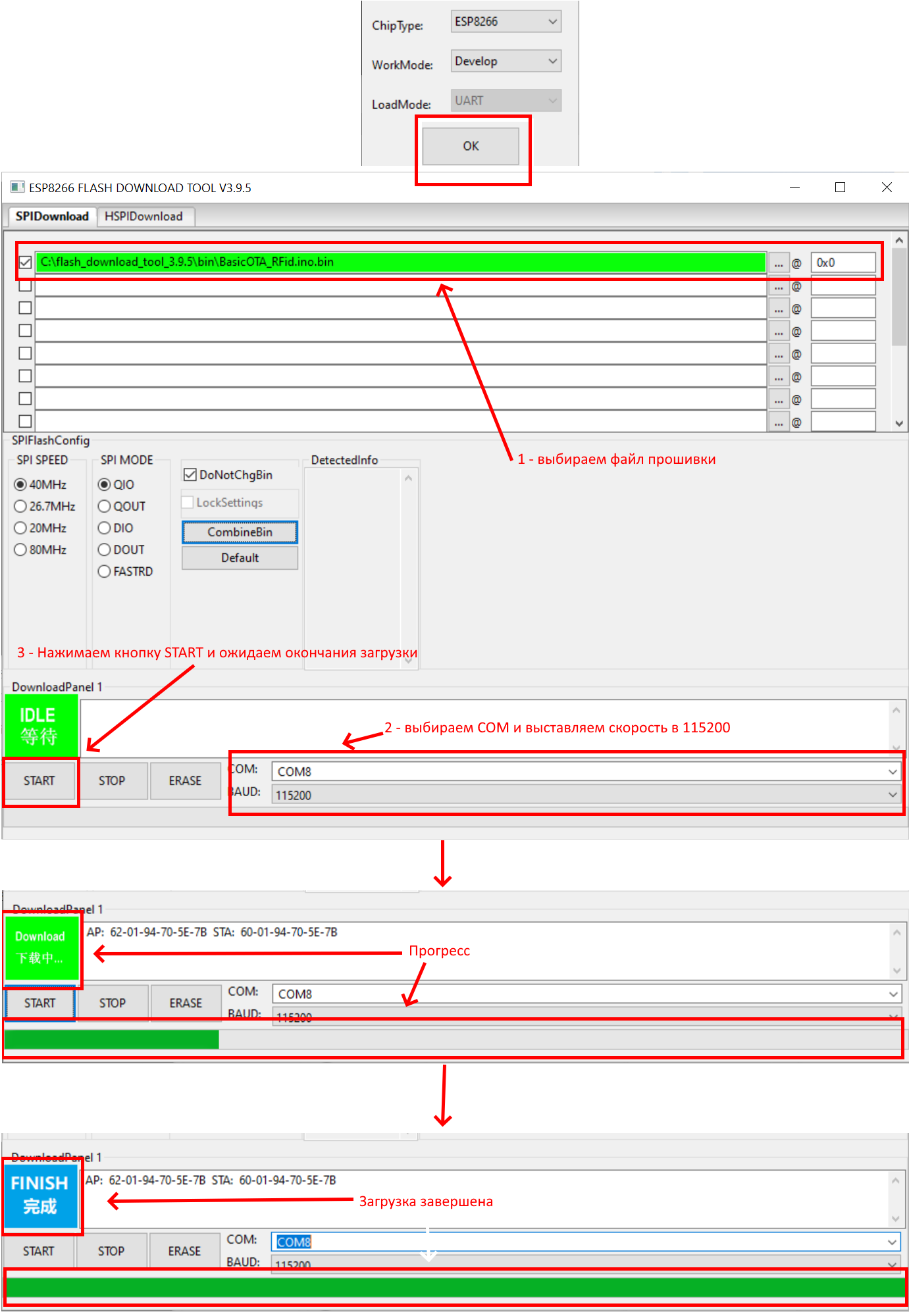 - Скачивание и настройка утилиты для прошивки (Flash Download Tool).